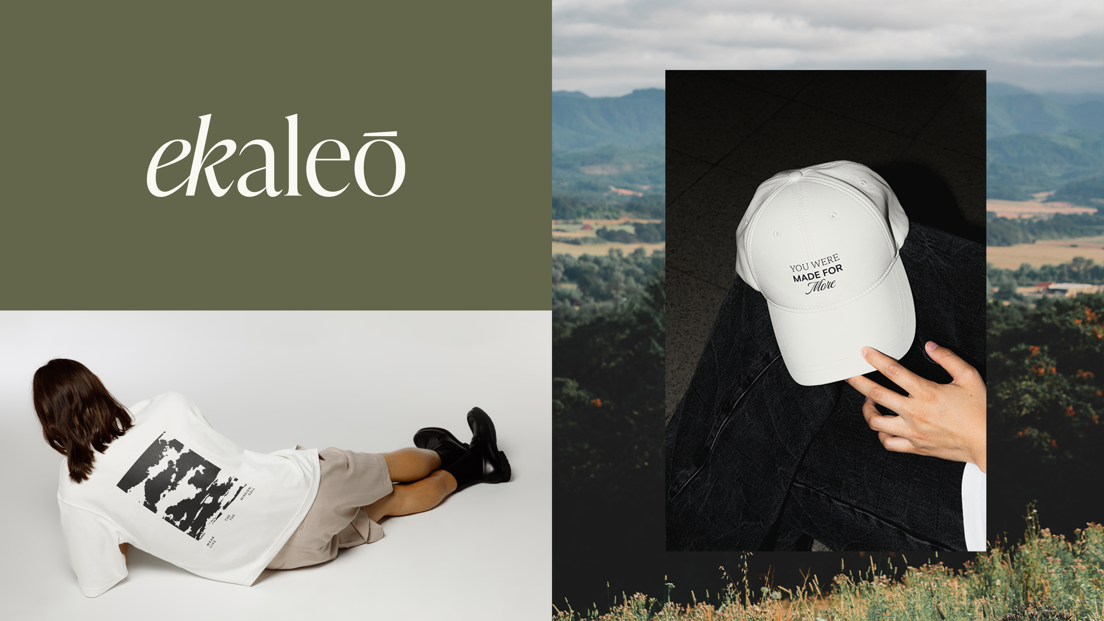 Ekaleo is a Christian clothing brand created to inspire people to live their faith with courage, purpose, and truth. The name comes from the Greek ekkaléō, meaning "to call out," a concept that guides the entire identity. The visual system combines expressive typography, an organic palette, and symbolic elements like doorways, light, and sky to evoke presence, movement, and transformation. Light, modern, and spiritual, the brand features graphic elements that express faith in action, delivering a manifesto that speaks beyond style to communicate a true life mission.