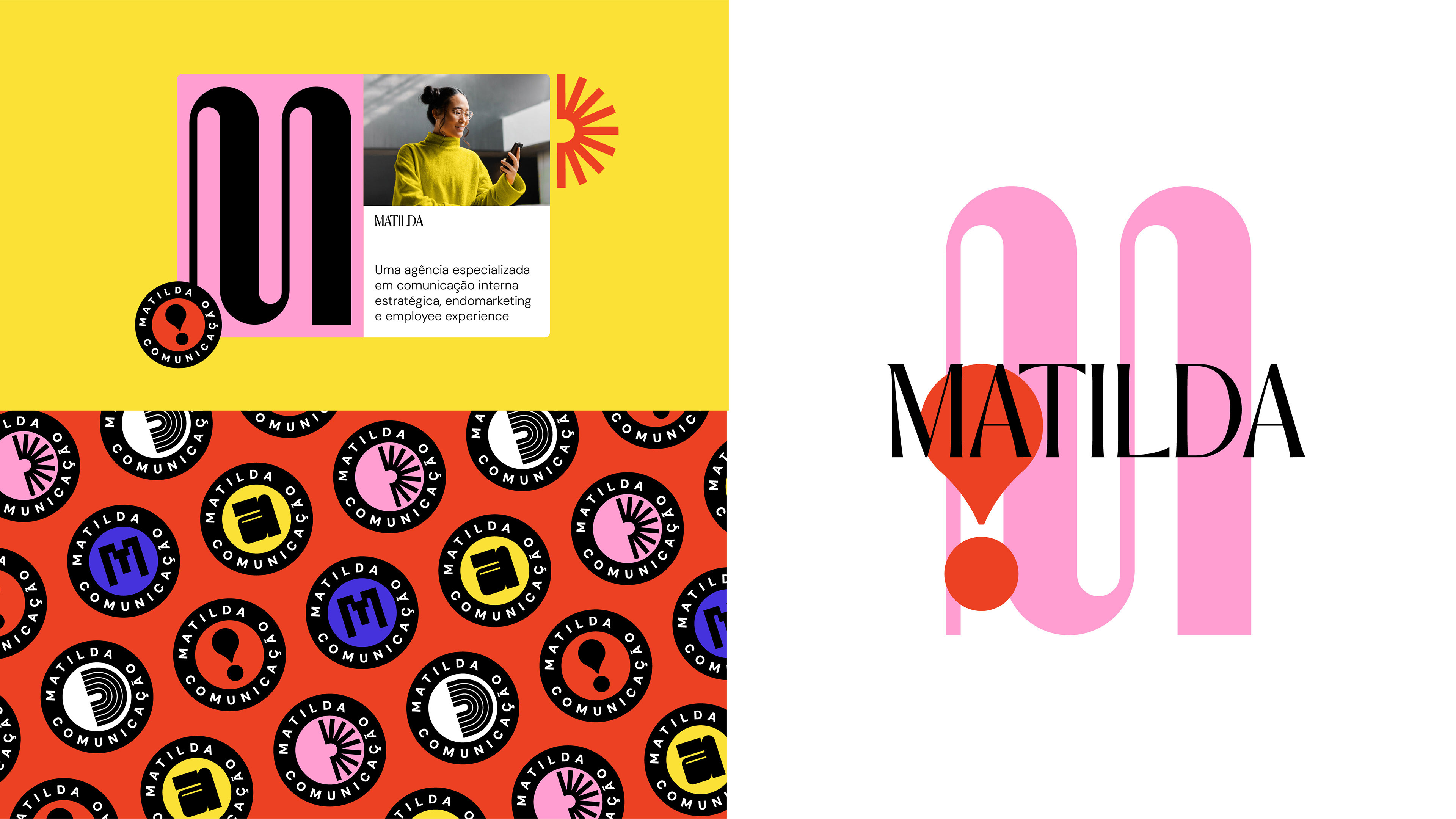 Matilda é uma agência de endomarketing que acredita que toda transformação começa de dentro para fora e trabalham com empresas para fortalecer suas culturas de forma humana e colaborativa. Para este projeto, desenvolvemos toda a plataforma de marca e a identidade visual. O design cambiante foi nossa resposta estratégica para comunicar o principal pilar da marca: a transformação. Como a Matilda atua diretamente na mudança da cultura organizacional de seus clientes, precisávamos de um sistema visual que representasse dinamismo, adaptação e fluidez. Cada letra do logotipo ganhou formas alternativas que se transformam conforme a aplicação, criando um sistema vivo que evolui junto com a marca.