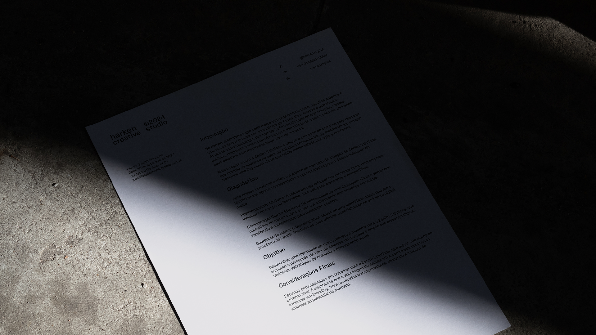 O nome "Harken", que significa "ouvir atentamente", captura a essência da empresa. A marca acredita que ouvir é o primeiro passo para compreender e, com essa premissa, atua como uma parceira estratégica que se envolve diretamente nos problemas e desafios das marcas. Através de sessões que funcionam como uma terapia, Harken oferece soluções criativas que vão desde o posicionamento até a construção de identidades visuais fortes e coerentes com os valores e a missão de cada cliente.